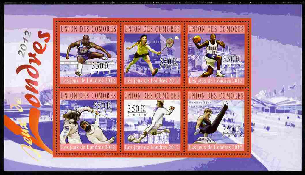 Comoro Islands 2010 London Olympic Games perf sheetlet containing 6 values unmounted mint