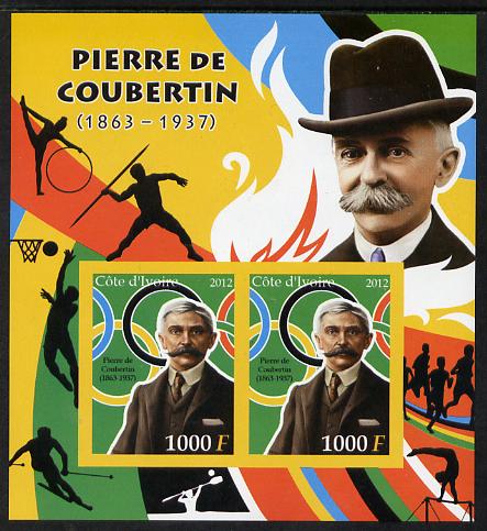Ivory Coast 2012 Pierre de Coubertin imperf sheetlet containing 2 values unmounted mint