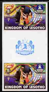 Lesotho 1984 Los Angeles Olympic Games 75s (Basketball) imperf proof gutter pair from the uncut proof sheet unmounted mint as SG 593
