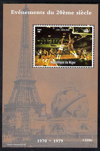 Niger Republic 1998 Events of the 20th Century 1970-1979 Karim Abdel Basketball perf souvenir sheet unmounted mint. Note this item is privately produced and is offered purely on its thematic appeal