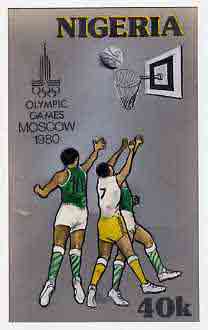 Nigeria 1980 Moscow Olympic Games - original hand-painted artwork for 40k value (Basketball) by unknown artist on card 5" x 8.5"