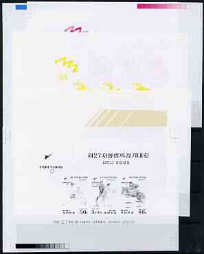 North Korea 2000 Sydney Olympic Games imperf proof of sheetlet #1 (Football, Basketball & Showjumping) - the set of 5 imperf progressive proofs comprising the 5 individual colours (magenta, yellow, blue, black & gold)