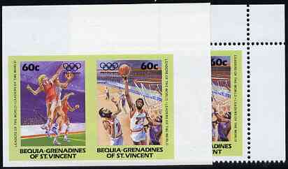 St Vincent - Bequia 1984 Olympics (Leaders of the World) 60c (Netball & Basketball) imperf se-tenant pair plus normal perf pair unmounted mint
