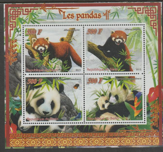 Benin 2015 Pandas perf sheet containing four values unmounted mint
