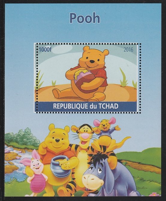 Chad 2016 Pooh Bear perf s/sheet containing 1 value unmounted mint. Note this item is privately produced and is offered purely on its thematic appeal. .