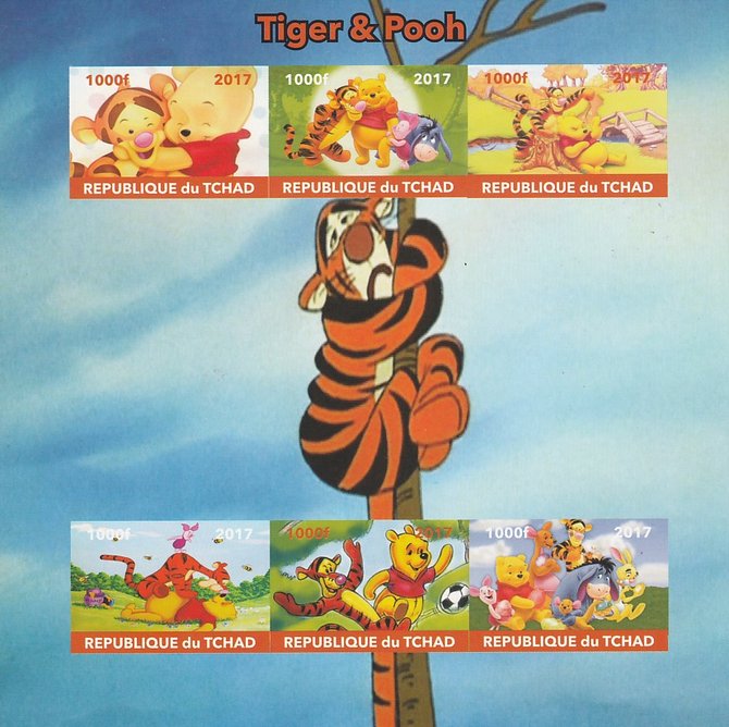 Chad 2017 Disney's Tigger & Pooh imperf sheetlet containing 6 values unmounted mint. Note this item is privately produced and is offered purely on its thematic appeal. .