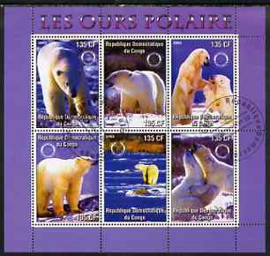Congo 2003 Polar Bears perf sheetlet #02 (violet border) containing 6 values each with Rotary Logo, fine cto used