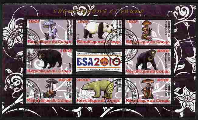 Congo 2010 Mushrooms & Fauna #01 perf sheetlet containing 8 values plus Scouts label fine cto used