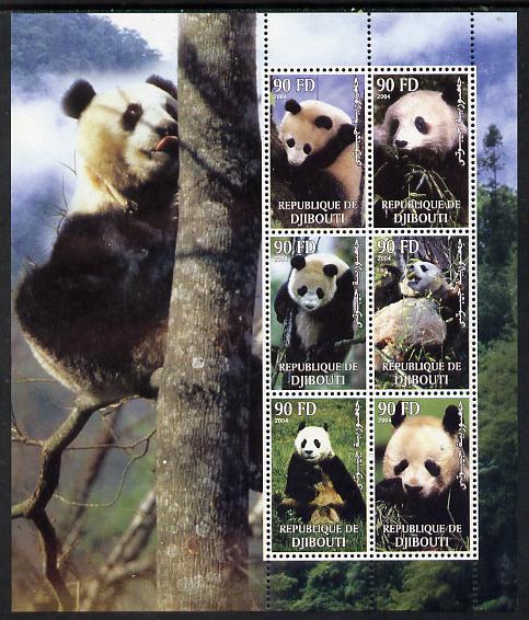 Djibouti 2004 Pandas perf sheetlet containing 6 values unmounted mint. Note this item is privately produced and is offered purely on its thematic appeal