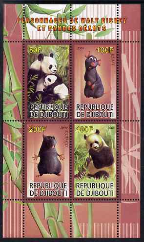 Djibouti 2009 Pandas and Disney Characters #3 perf sheetlet containing 4 values unmounted mint
