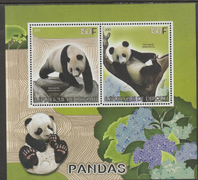 Djibouti 2015 Pandas perf sheet containing two values unmounted mint
