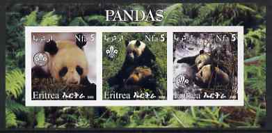 Eritrea 2002 Pandas #2 imperf sheetlet containing set of 3 values each with Scouts Logo unmounted mint