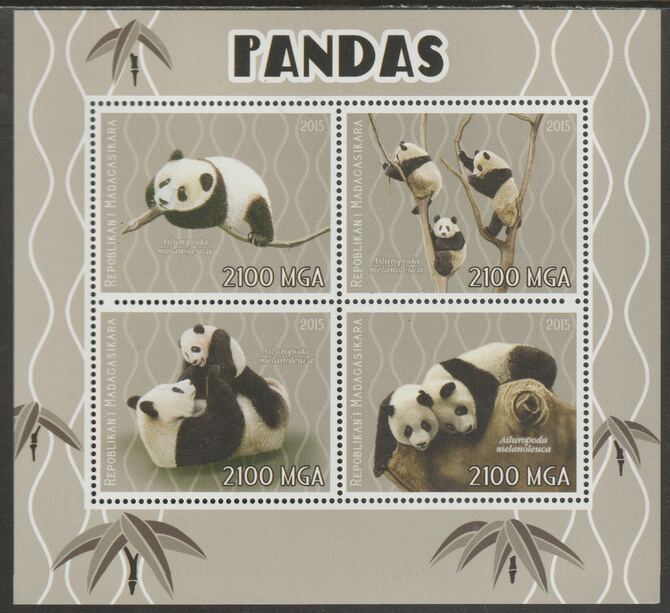 Madagascar 2015 Pandas perf sheet containing four values unmounted mint