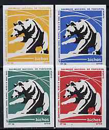 Match Box Labels - Bear from Portuguese Wildlife set with 4 diff background colours, fine unused condition (4 labels)
