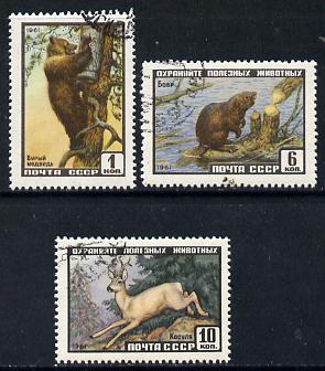 Russia 1961 Wildlife cto set of 3 (Beaver, Deer & Bear) SG 2534-36*