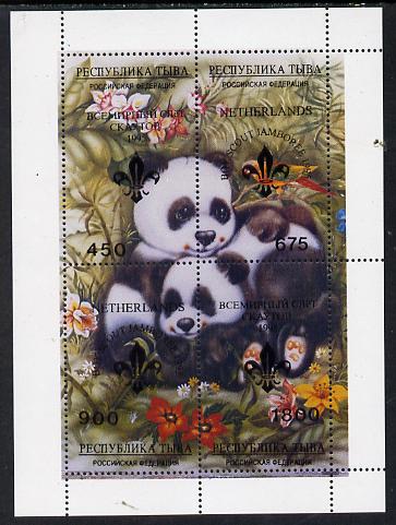Touva 1995 Pandas composite perf sheet containing complete perf set of 4 with Scout Jamboree overprint