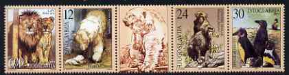Yugoslavia 2001 Endangered Species - 50th Anniversary of Zoo Palic, Subotica perf se-tenant strip of 5 (4 stamps plus label) unmounted mint, SG 3283-6