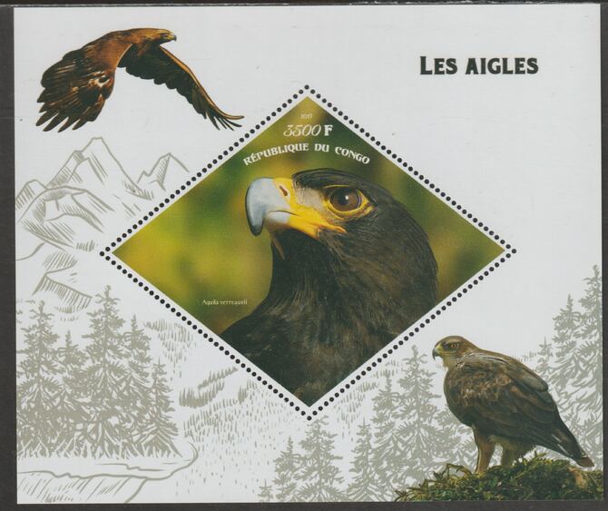 Congo 2019 Eagles perf m/sheet containing one diamond shaped value unmounted mint