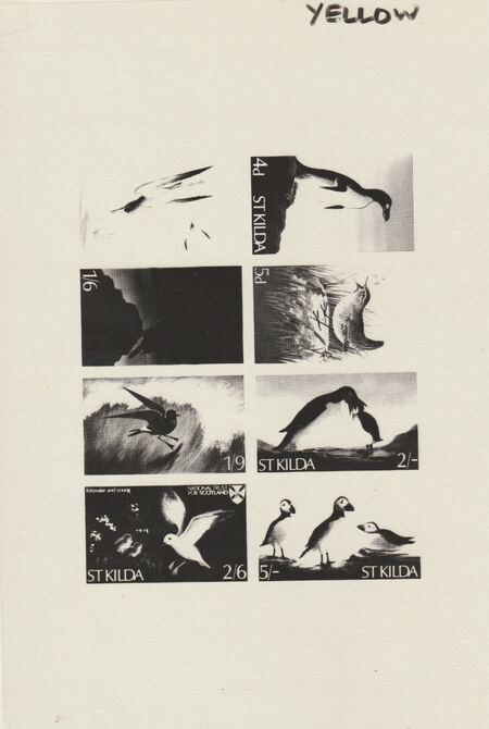 St Kilda 1968 Birds - Photographic plate as used for the production of 8-value sheetlet (produced by National Trust for Scotland) endorsed 'yellow' and almost certainly unique, complete with the issued sheetlet