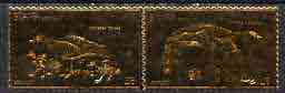Staffa 1976 Hawaiian Goose (Male & Female) £8 + £8 se-tenant pair perforated & embossed in 23 carat gold foil unmounted mint