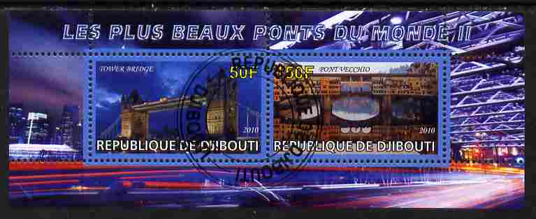 Djibouti 2011 Bridges of the World #2 perf sheetlet containing 2 values fine cto used