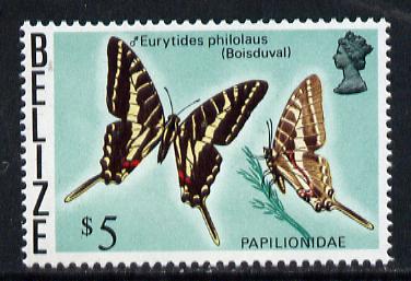 Belize 1974 Butterfly $5 (Eurytides philolaus) s/ways wmk def unmounted mint, SG 394*