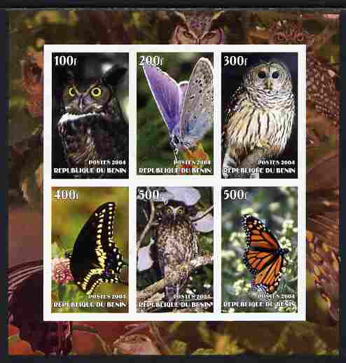 Benin 2004 Owls & Butterflies imperf sheetlet containing set of 6 values unmounted mint