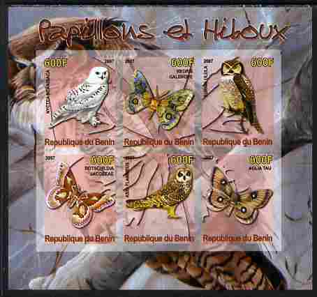 Benin 2007 Butterflies & Owls #4 imperf sheetlet containing 6 values unmounted mint. Note this item is privately produced and is offered purely on its thematic appeal