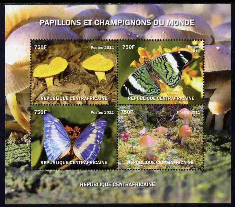 Central African Republic 2011 Butterflies & Mushrooms #1 perf sheetlet containing 4 values unmounted mint. Note this item is privately produced and is offered purely on its thematic appeal