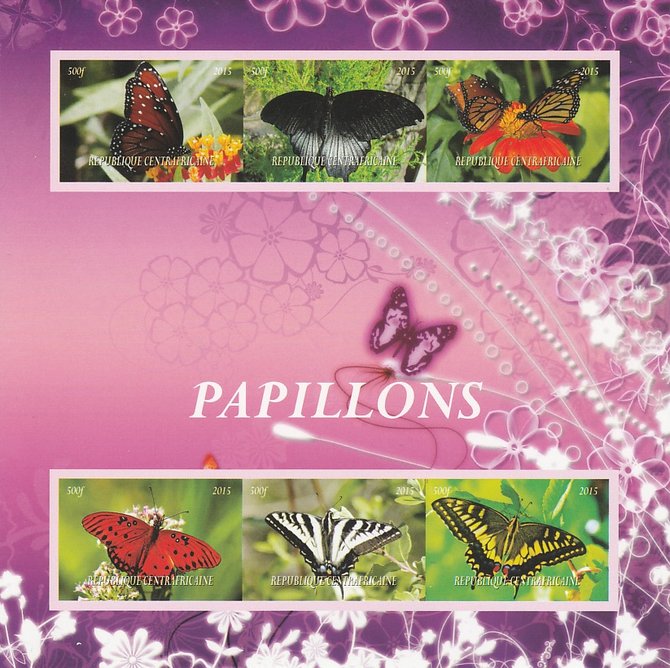 Central African Republic 2015 Butterflies imperf sheetlet containing 6 values unmounted mint. Note this item is privately produced and is offered purely on its thematic appeal