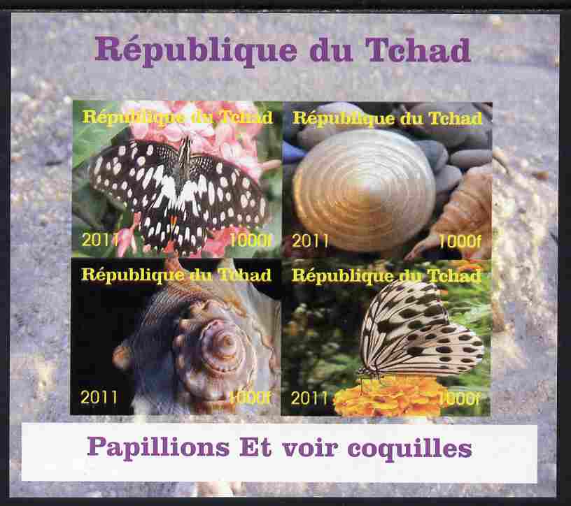 Chad 2011 Shells & Butterflies imperf sheetlet containing 4 values unmounted mint. Note this item is privately produced and is offered purely on its thematic appeal