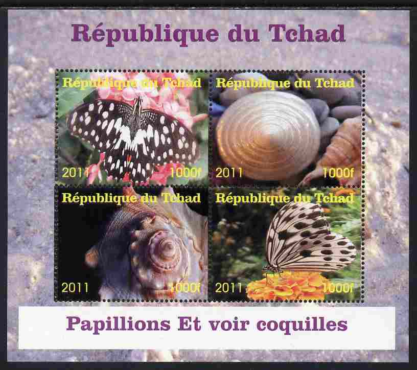 Chad 2011 Shells & Butterflies perf sheetlet containing 4 values unmounted mint. Note this item is privately produced and is offered purely on its thematic appeal