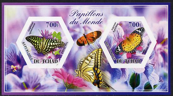 Chad 2014 Butterflies #5 imperf sheetlet containing two hexagonal-shaped values unmounted mint