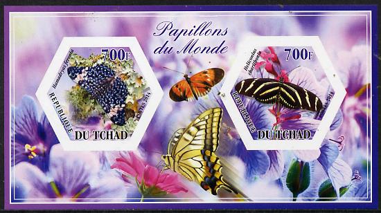 Chad 2014 Butterflies #6 imperf sheetlet containing two hexagonal-shaped values unmounted mint