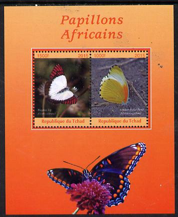 Chad 2015 African Butterflies #3 (orange background) imperf sheetlet containing 2 values unmounted mint. Note this item is privately produced and is offered purely on its thematic appeal. .