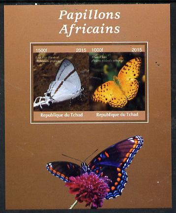 Chad 2015 African Butterflies #4 (brown background) imperf sheetlet containing 2 values unmounted mint. Note this item is privately produced and is offered purely on its thematic appeal. .