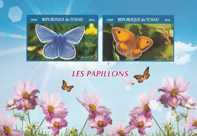 Chad 2016 Butterflies #1 imperf sheetlet containing 2 values unmounted mint. Note this item is privately produced and is offered purely on its thematic appeal. .