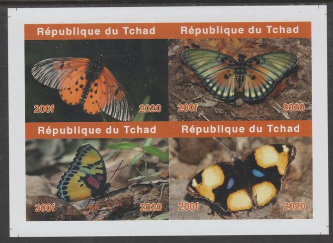 Chad 2020 Butterflies imperf sheetlet containing 4 values unmounted mint. Note this item is privately produced and is offered purely on its thematic appeal, it has no postal validity