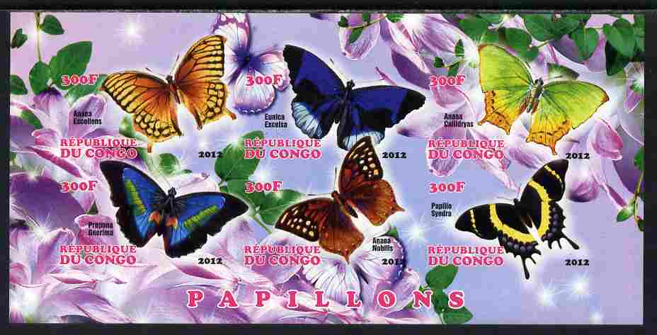 Congo 2012 Butterflies #2 imperf sheetlet containing 6 values unmounted mint