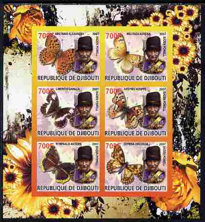 Djibouti 2007 Butterflies Baden Powell imperf sheetlet containing 6 values unmounted mint. Note this item is privately produced and is offered purely on its thematic appeal