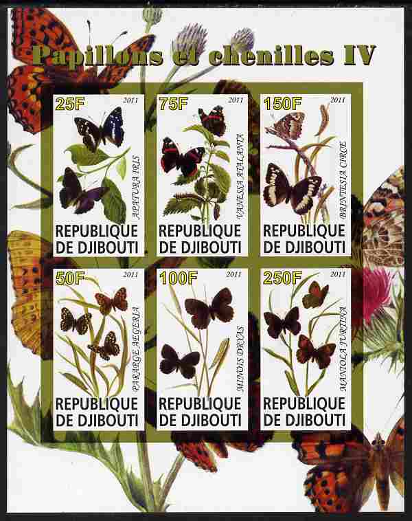 Djibouti 2011 Butterflies & Caterpillars #4 imperf sheetlet containing 6 values unmounted mint