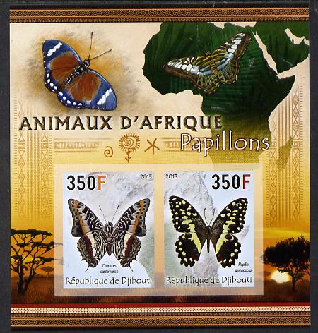 Djibouti 2013 Animals of Africa - Butterflies #1 imperf sheetlet containing 2 values unmounted mint