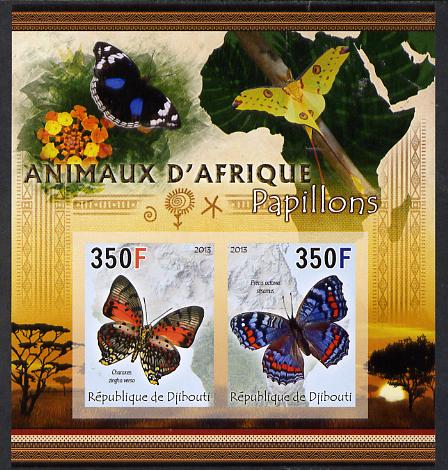 Djibouti 2013 Animals of Africa - Butterflies #2 imperf sheetlet containing 2 values unmounted mint