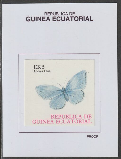 Equatorial Guinea 1977 Butterflies EK5 (Adonis Blue) proof in issued colours mounted on small card - as Michel 1199