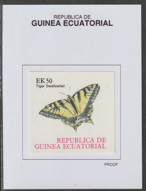 Equatorial Guinea 1977 Butterflies EK50 (Tiger Swallowtail) proof in issued colours mounted on small card - as Michel 1202