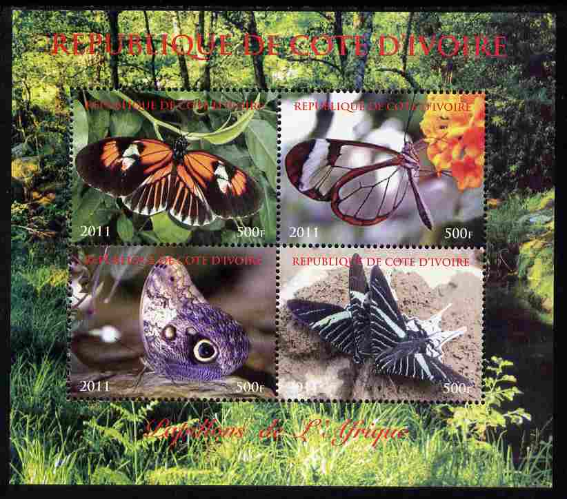 Ivory Coast 2011 Butterflies of Africa perf sheetlet containing 4 values unmounted mint. Note this item is privately produced and is offered purely on its thematic appeal