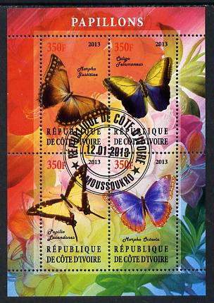 Ivory Coast 2013 Butterflies #1 perf sheetlet containing 4 values fine cto used