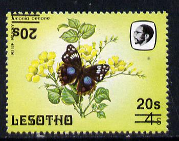 Lesotho 1986-88 Blue Pansy provisional 20s on 4s with double surcharge, one inverted unmounted mint, (SG 732a)