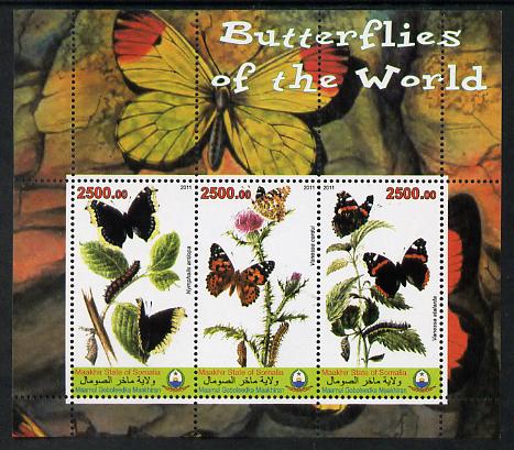 Maakhir State of Somalia 2011 Butterflies of the World #3 perf sheetlet containing 3 values unmounted mint