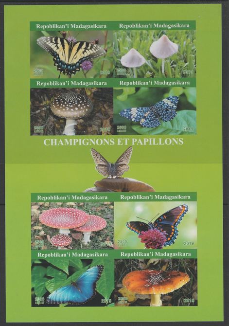 Madagascar 2019 Butterflies & Fungi imperf sheetlet containing 8 values unmounted mint. Note this item is privately produced and is offered purely on its thematic appeal, it has no postal validity